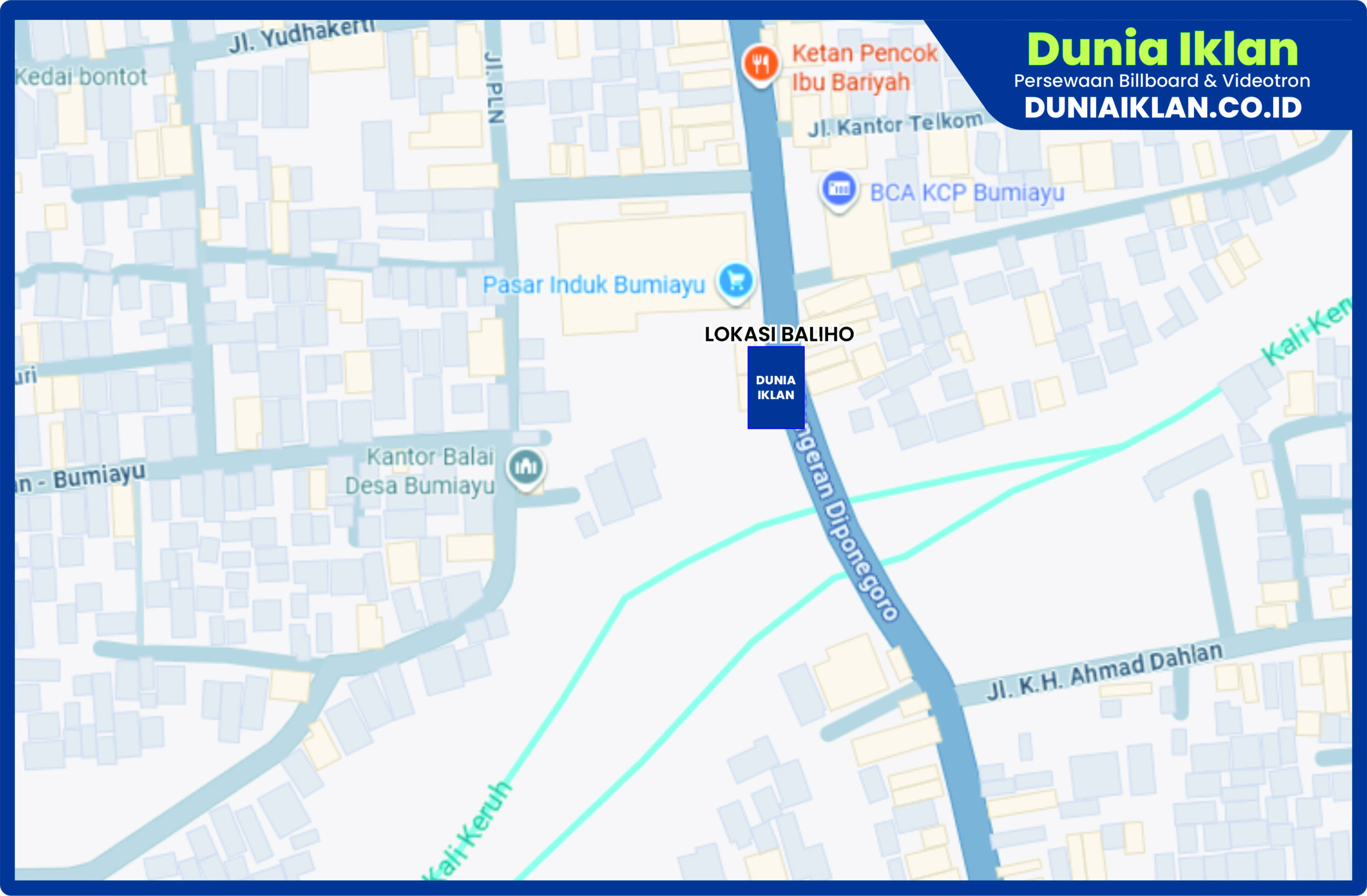 PT. Dunia Iklan Indonesia Jakarta menjadikan partner terbaik anda dalam menemukan kemudahan beriklan di ruang terbuka publik. Kami mempersembahkan ribuan titik-titik media iklan terbaik luar ruang berupa BALIHO, BILLBOARD ataupun VIDEOTRON di seluruh wilayah Indonesia dengan memberikan pilihan yang luas dan mudah diakses sesuai dengan target kebutuhan anda seperti titik Baliho Ukuran 4 x 6 M Vertikal Jl. Pangeran DIponegoro Kab. Brebes – Jawa Tengah ini.